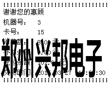 計算模式:輸入扣費金額,按[確認]鍵后,將卡片放于刷卡區(qū),即可進行扣費,若連接的有打印機,可直接打印消費明細,打印出的信息如下圖所示: