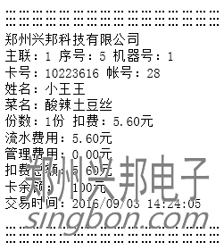 7. 對一個用戶卡,小票打印一體機在本機上的當次明細以小票的形式打印出來,設置打印張數,以便客戶報銷和查賬,進行訂餐、取餐、菜單消費、直接扣費打印小票內容各有不同。